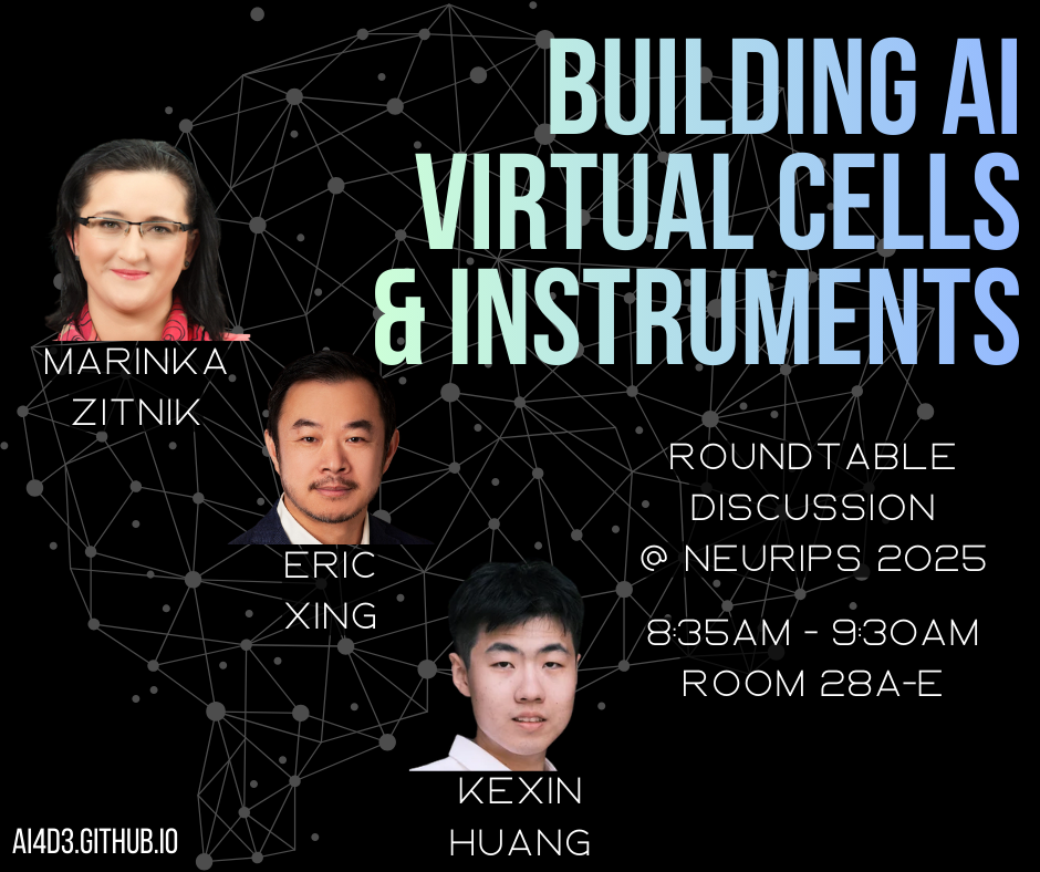 Experts: Eric Xing (GenBio, Carnegie Mellon University, Mohamed bin Zayed University of AI), Marinka Zitnik (Harvard Medical School), and Kexin Huang (Biomni, Stanford)